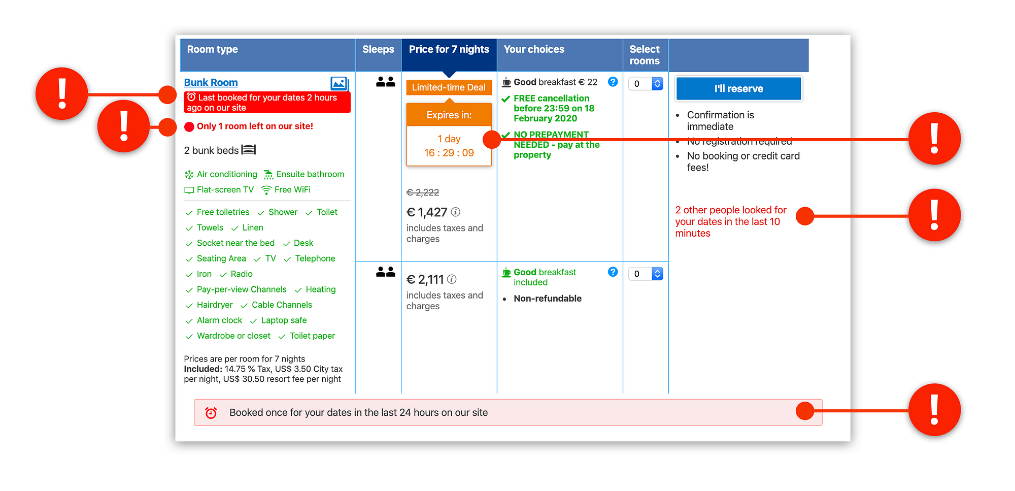 - "Only 1 room left!"
